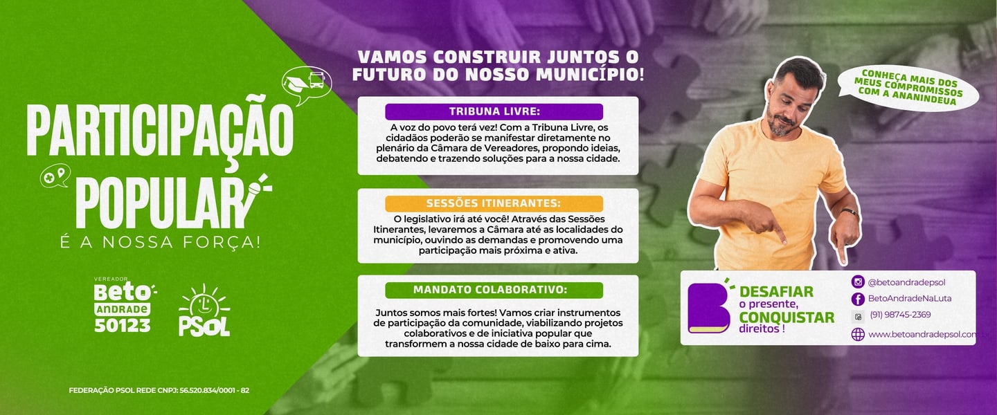 O MAIS VOTADO DO PSOL ANANINDEUA; Conheça a identidade visual e conteúdos que fizemos para o candidato a vereador em Ananindeua-PA em 2024.