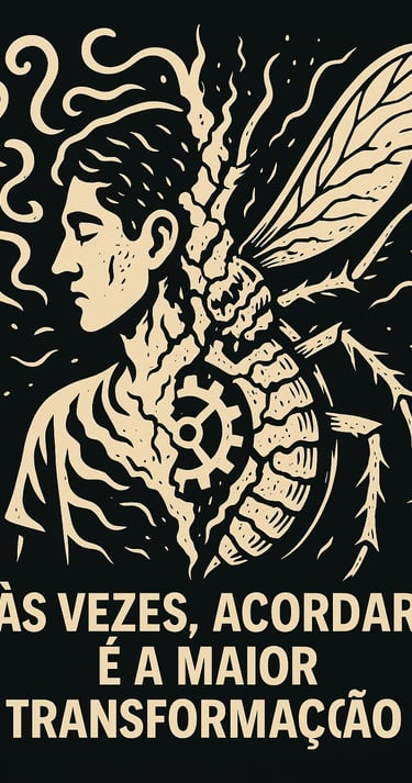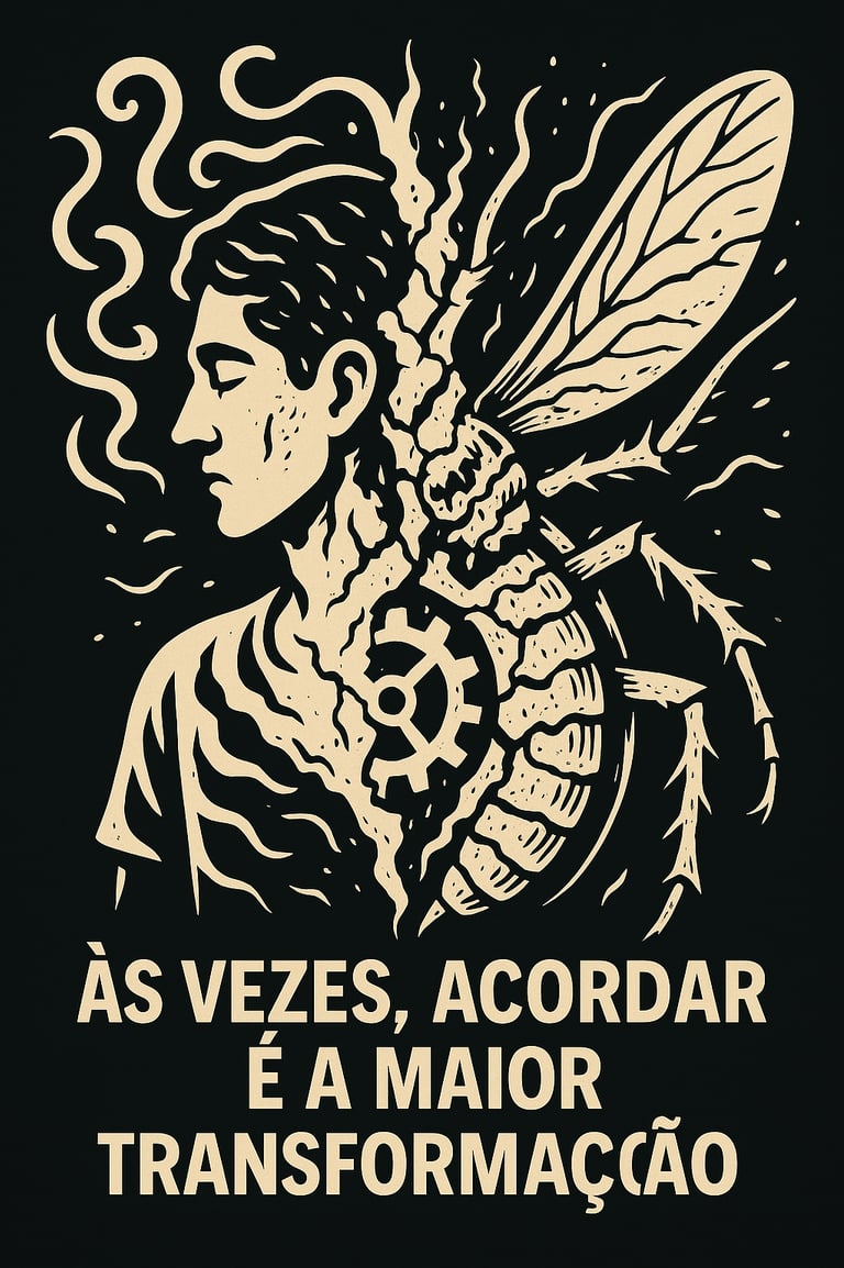 A frase “Às vezes, acordar é a maior transformação” não é só um desabafo, é um espelho. Um lembrete poético de que o verdadeiro pesadelo não é virar inseto... mas virar apenas mais uma engrenagem, girando, girando… até esquecer onde termina o humano e começa o autômato.